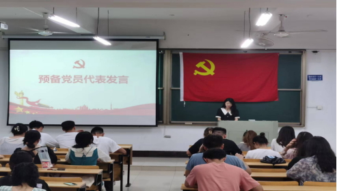 预备党员杨园代表全体预备党员发言。她表示,自己一定会在党支部的带领下继续努力,不断加强党性修养,牢记党的宗旨,不断向老党员学习,永远铭记党员这个称号所代表的责任,在未来的学习和生活中将严格按照党章的标准要求自己,时刻保持共产党员的先进性。