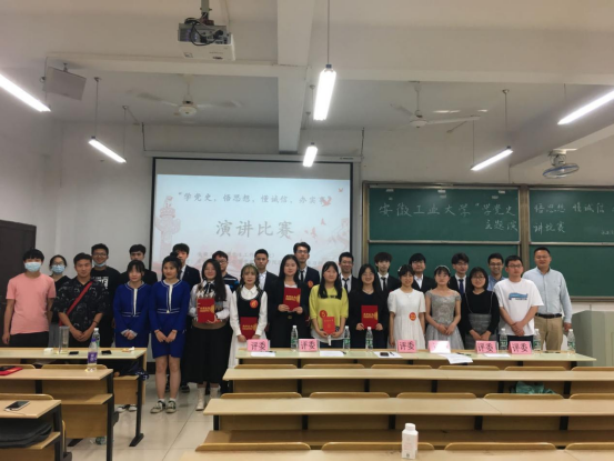 5月27日下午,由学工部主办,公法学院承办的“学党史,悟思想,懂诚信,办实事”主题演讲大赛在东区数理楼403顺利举行。各学院参赛选手及学生代表参加,校学生工作部蔚德磊老师、公法学院邢维迢老师、电气学院李修正老师,机械学院张敏老师及部分学生代表担任评委。