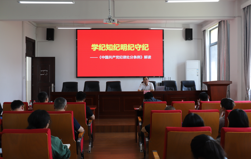 活动特别邀请校宣讲团成员、马克思主义学院教师陆书建副教授作党纪学习教育专题辅导,他以“学纪、知纪、明纪、守纪——《中国共产党纪律处分条例》解读”为题,从《条例》修订的背景及要求、主要内容解读、贯彻落实的具体措施要求等方面进行了深入讲解。活动中,师生们还共同观看了警示教育片《零容忍》第五集《永远在路上》。