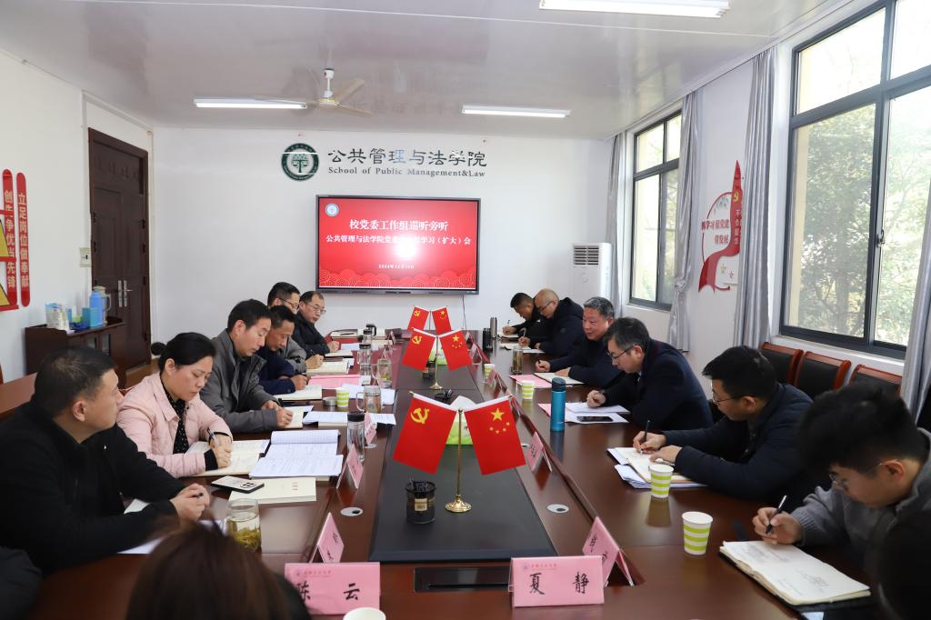 会议采取视频学习、集中学习、专题研讨和座谈交流等形式进行。同志们观看了《奋力谱写中国式现代化新篇章——习近平总书记2024年以来治国理政纪实(把党的伟大自我革命进行到底)》视频,集体学习了习近平《论教育》部分篇章、习近平总书记重要文章《以人口高质量发展支撑中国式现代化》、习近平法治思想、人民日报《树牢造福人民的政绩观(总书记的人民情怀)》、中共安徽省委第十一届八次全会精神等内容。围绕“深入学习贯彻习近平总书记关于教育的重要论述、努力培育新时代高层次公共管理与法学人才”主题开展了专题研讨,学院党委副书记、院长徐济益,党委副书记、纪委书记、副院长周浩然,党委委员、公共事业管理系主任邵宁等三位同志先后作了重点交流发言,并抽取了教工党支部书记代表施磊磊、学生党支部书记代表朱玲作随机交流发言。
