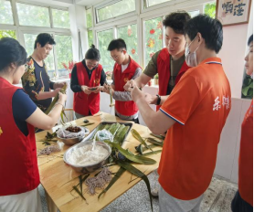 粽叶传情——包粽子迎端午。党员及入党积极分子分组协作,在康养家园工作人员的指导下,熟练地拿起粽叶、填入糯米、包裹捆扎。现场粽叶翻飞、糯米飘香,青年们一边请教包粽子的技巧,一边学习传统端午习俗,一个个裹着清香、充满爱意的粽子在手中成型。随后,志愿者们将包好的粽子送到老人手中,提前送上节日的祝福,让老人们感受到传统文化的温暖和集体关怀。