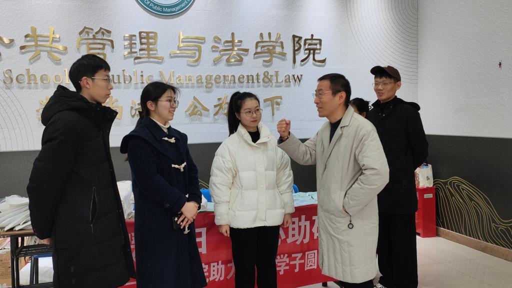 胡正友带领学院老师走进考研教室,为学子们发放实用精美的“考研大礼包”,里面包括中性笔、2B铅笔、尺子等考试必备工具,祝愿考研学子在考场上能够提笔如神、文思泉涌。胡正友书记与同学们进行问答互动,送上真切的关怀与鼓励。周浩然浩然表示,愿同学们扬帆起航,此行必成功,公法全体师生是一家,莘莘学子的每一个梦想、每一份努力,都由我们共同来守护。同学们也对学院老师们的温馨祝福表示感谢,并表示将坚定考研信念,保持学习动力,会带着学院的关心与祝福轻装上阵。