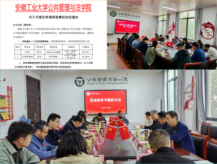 教师编写出版了《企业行政管理》《劳动教育理论与实践》等本科教材,建立专业教学案例库,加强课程教学大纲和教案建设,做到每门课都有教案;行政管理专业负责人徐济益教授获省级教学名师称号(2021)、省青年拔尖人才称号(2023),劳动与社会保障专业负责人张洪根教授获省级模范教师称号(2016)等;学院成功获批国家级首批新文科研究与改革实践项目教学研究等课题46项,获批省级“六卓越一拔尖”人才培养创新项目等质量工程项目24项。学院加强公共基础课教学建设,提升《劳动教育与实践》《国家安全教育》《经济法C》等跨院课程教学质量。