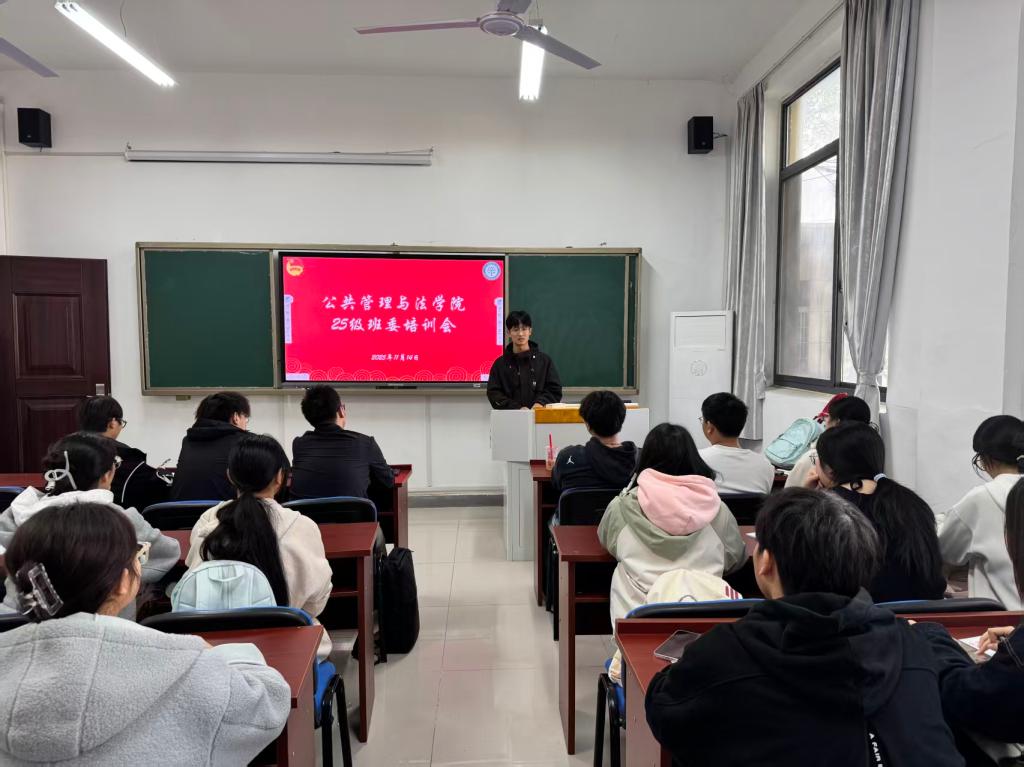 2025级各班主要学生干部明确职责,发挥班干部的模范作用。11月14日中午,公法学院主席团在公法楼110教室开展2025级新生班委培训会。院学生会主席团成员余天阳、24级班长杜森、崔紫怡、团支书李璐璐、25级各班班长、团支书及学习委员参会。