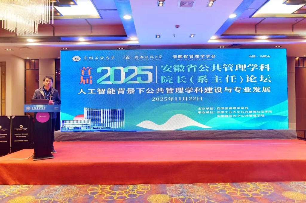 陆林在致辞中介绍了学校办学历史以及在学科发展、专业建设等方面取得的成绩。他指出,党的二十届四中全会为“十五五”时期发展擘画蓝图,其中“进一步全面深化改革取得新突破”“推进治理体系现代化”等重要部署,与公共管理学科的新使命新任务高度契合。举办首届(2025)公共管理学科院长(系主任)论坛是安徽省公共管理学科发展史上开创性、里程碑式的重要事件,意义重大。本次论坛聚焦“人工智能背景下公共管理学科建设与专业发展”这一主题,正是深入学习领会习近平总书记关于社会治理的重要论述,认真贯彻落实党的二十大和二十届历次全会精神的具体实践,也是我省公共管理学科主动服务国家重大战略需求、积极赋能省域高质量发展的生动体现。