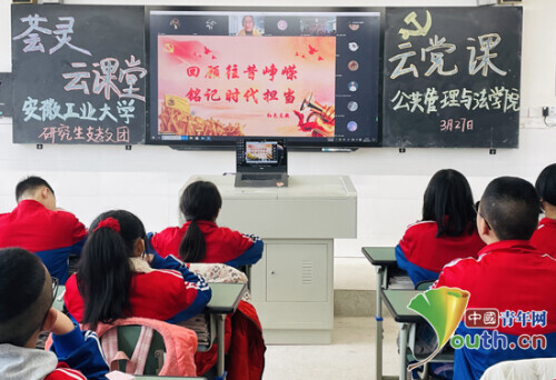“荟灵”云课堂主题云党课在乐至县南塔九年义务教育学校开课。安徽工大研支团供图