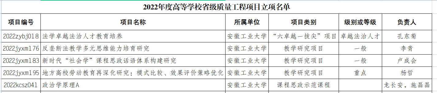 近日,安徽省教育厅公布了 2022年高等学校省级质量工程项目立项名单(皖教秘高〔2023〕56 号),黄色网站 共5个项目获批立项,包括“六卓越一拔尖”项目1项、课程思政示范课程1项、教学研究项目3项。