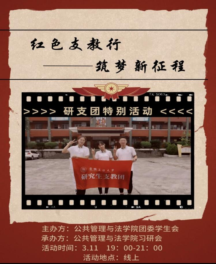 分团委在校团委的指导下,推出“红色支教行·筑梦新征程”研支团特别活动,为实现中华民族伟大复兴的中国梦凝聚强大的青春力量。现将活动相关内容通知如下。