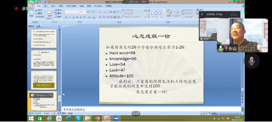 于东山副教授用深入浅出的语言为大家报告了自己廿年行政管理专业学习的心路历程。他从“如何学习行政管理专业、如何提高论文写作技能、如何在结伴前行中提升与完善自我”方面为大家做了精彩演讲。于东山副教授还积极敦促大家在大学中要知道自己“怎么学、学什么”,要学会自律、不沉迷于网络游戏,倡导大家对学习和生活要保持积极的心态,并指出只有保持积极、努力、坚持不懈的奋斗才会有光明的前途与未来。就像于东山副教授所说:“努力是我们前行的明灯,心态成就一切”。