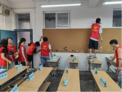 志愿者们集结到达珍珠园小学后,在张天琪老师的带领下领取了各自的志愿者工作牌,来到了需要清扫的教室。志愿者们分工合作,将教室内的旧文化墙撕掉,并细心处理残留的泡沫胶。他们认真清扫教室的各个角落,重点清理课桌桌洞、墙角、天花板等卫生死角,并将桌椅摆齐擦净。经过近一个小时的清理,教室面貌焕然一新。