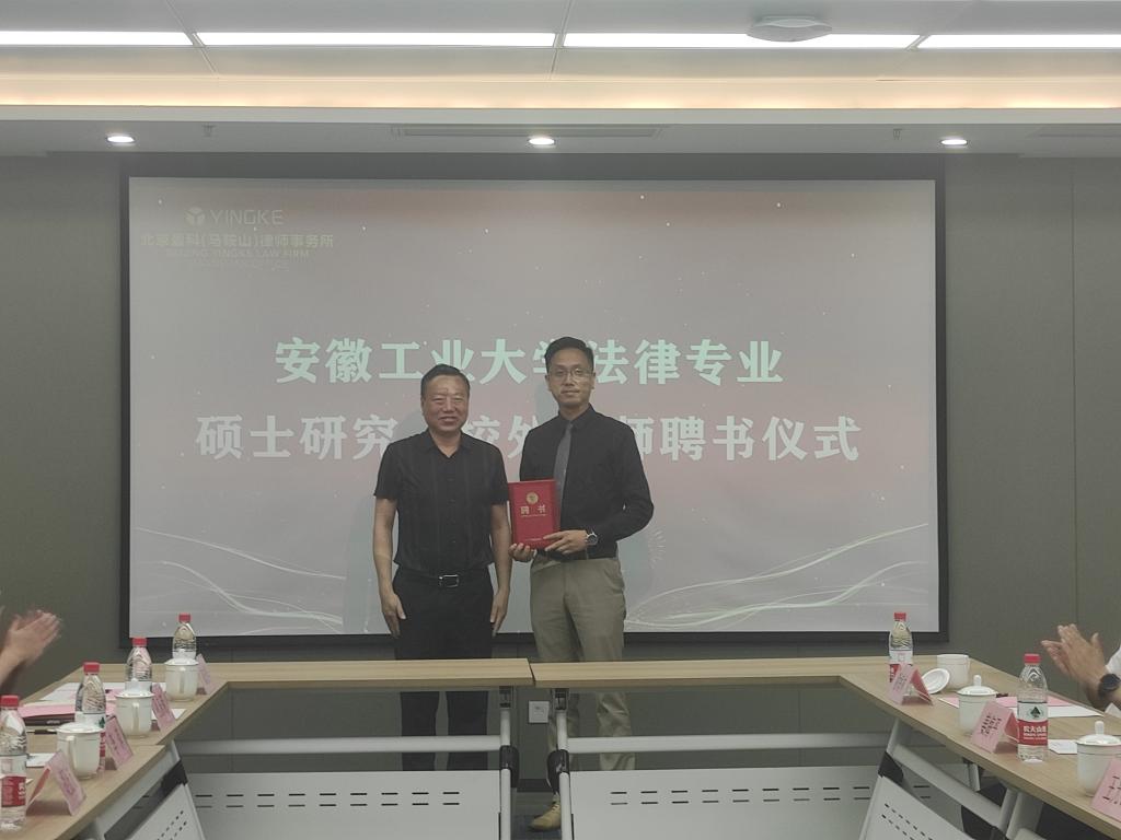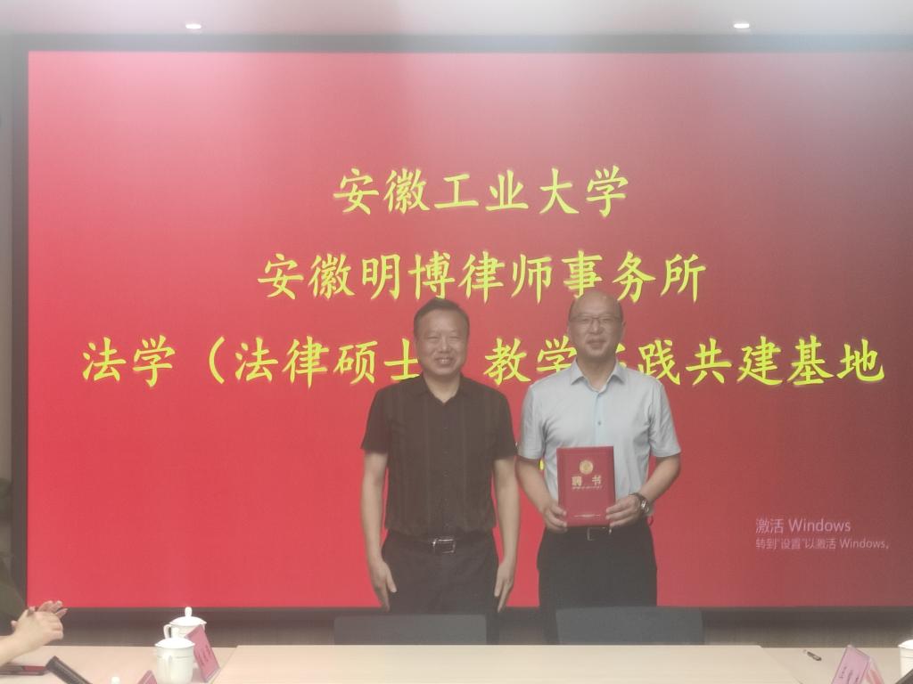 活动中,祖明分别与三家律师事务所负责人一起为法学(法律硕士)共建基地揭牌,分别向原安徽省律师协会副会长、安徽长城律师事务所创始合伙人李仁厅,北京盈科(马鞍山)律师事务所管委会副主任姜海平,马鞍山市律师协会会长、安徽明博律师事务所创始合伙人陈熙平颁发了我校兼职研究生导师聘任证书,学校与三家律师事务所就下一步开展人才培养、学生实习实训、社会公益活动等方面达成了一定共识。祖明强调,学校将进一步落实“访企拓岗促就业”工作,进一步强化校企合作,探索建立常态化交流互动机制,实现毕业生高质量就业,为服务地方经济发展作出更大贡献。