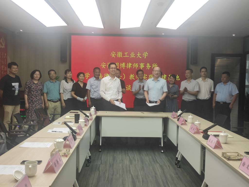 关于“律博士”义务普法宣讲团公益项目合作签约仪式在安徽明博律师事务所举行。校党委副书记祖明特邀参加签约仪式,马鞍山市律师行业党委副书记、律师协会会长陈熙平出席签约仪式,安徽明博律师事务所主任李阳及相关律师代表,公法学院领导班子成员,法学系主任和党支部书记等参加了签约仪式。