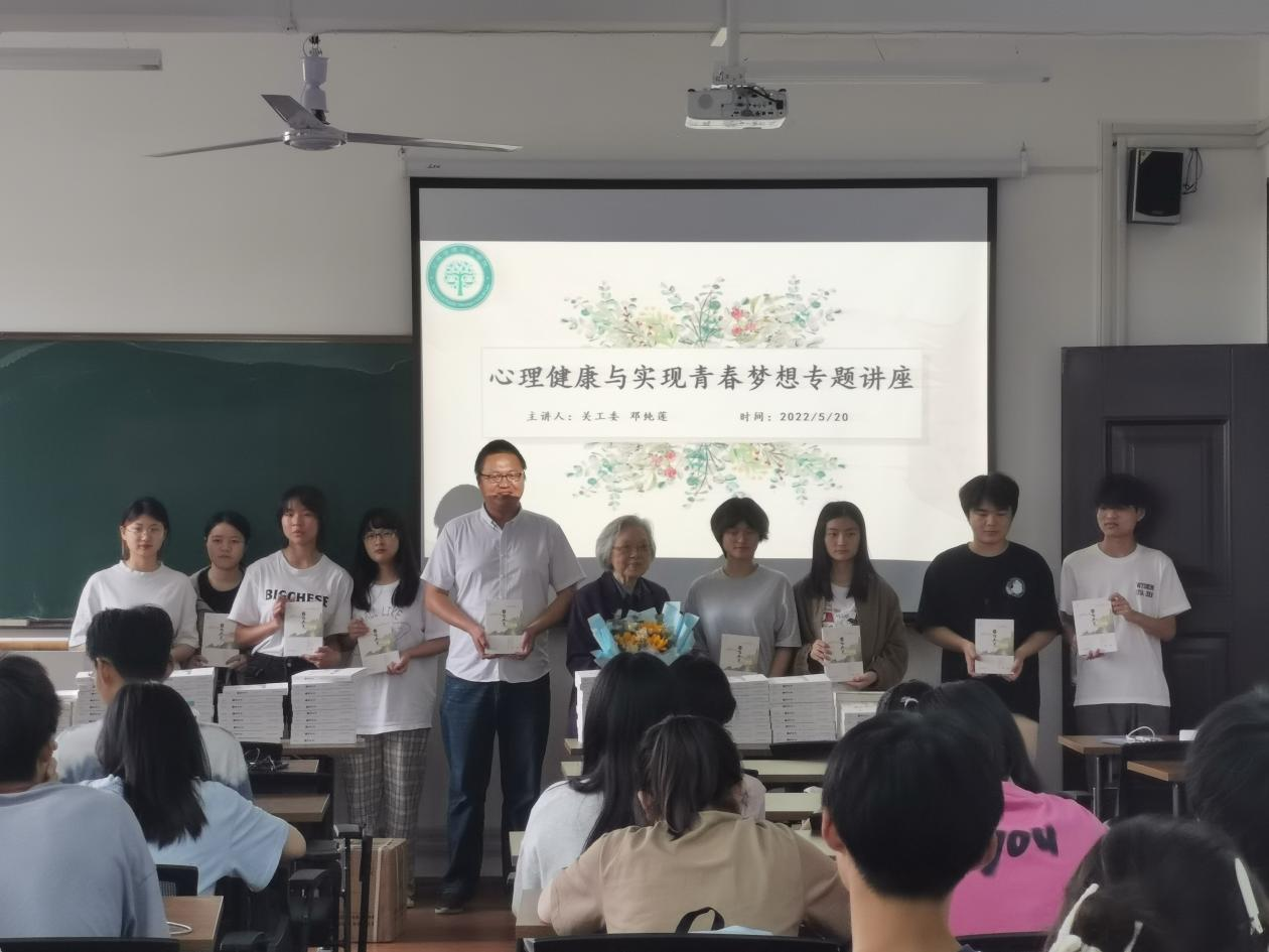 在本部公法楼205举办“心理健康与实现青春梦想”专题心理讲座,校关工委邓纯莲老师主讲,院团委书记邢维迢主持。