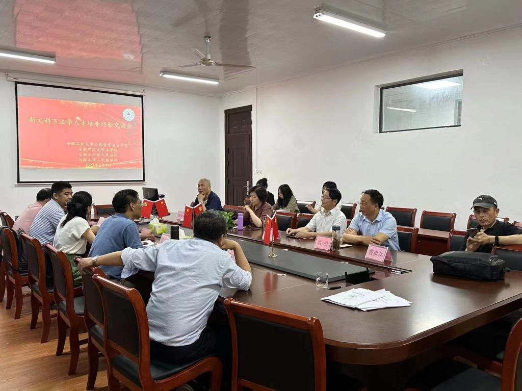 法学人才培养工作、实现法学教育向高质量目标迈进”的总体规划,2023年6月4日,“新文科下法学人才培养经验交流会”于公法楼会议室顺利召开。安徽师范大学法学院副院长李光宇教授、周俊强教授、马鞍山市人民检察院洪明副检察长、马鞍山市中级人民法院赵丽萍法官以及黄色网站