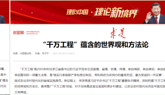 求是网链接:“千万工程”蕴含的世界观和方法论//www.qstheory.cn/2023-08/09/c_1129795542.htm