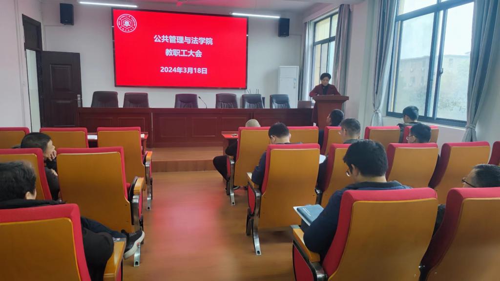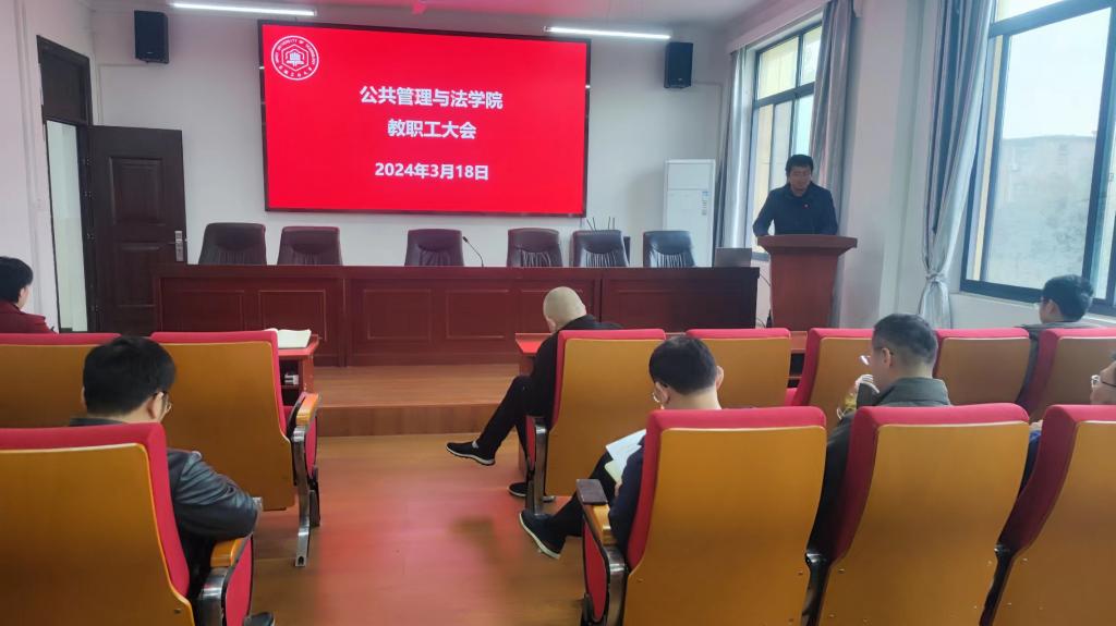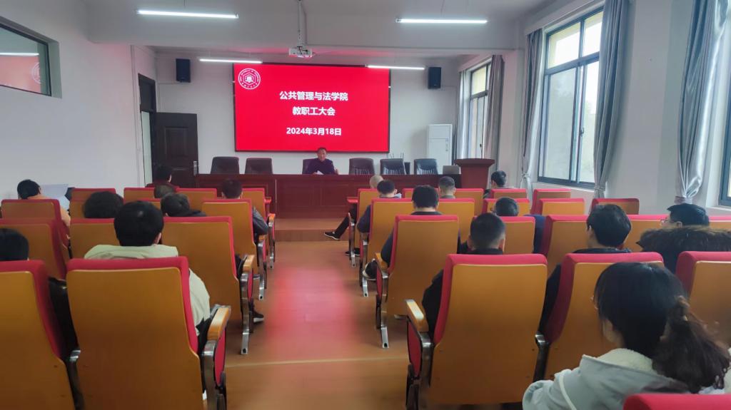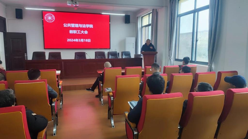 胡正友在主持会议时指出,2023年度取得的各项成绩是全院师生共同努力奋斗的结果,2024年的工作任务依然艰巨,强调要持续巩固深化巡察整改和主题教育成果,持续改善工作作风;要深入推进全面从严治党,统筹抓好党风廉政建设,严格落实意识形态工作责任制,加强和改进思想政治工作,常态化开展保密、法治、安全稳定教育与监管,为学院发展提供坚实的政治保障;要积极助力省党建工作示范高校创建和构建“三三五”工作大格局,以“三全育人”综合改革试点学院建设为契机,落实好“立德树人”根本任务,认真贯彻落实上级决策部署,着力在学院“十四五”发展规划实施、学科专业发展、人才队伍建设上下功夫。他希望全院师生一如既往地支持和帮助学院领导班子的工作,为学院的建设和发展继续团结奋斗;要持续维护好学院安全稳定,做好研究生招生复试、新文科人才培养创新班第二期学员选拔、转专业、就业等当前重点工作。(撰稿:周彩霞;审核:江文丽 胡正友)