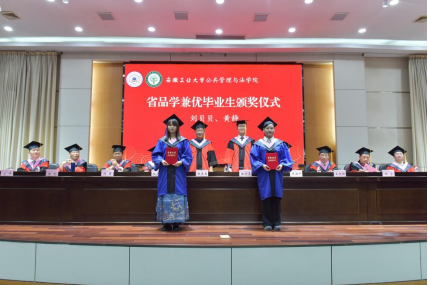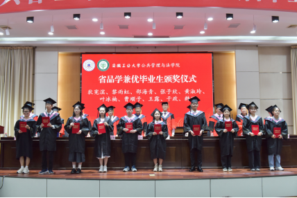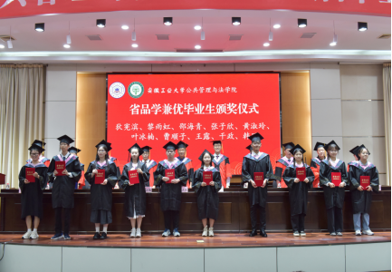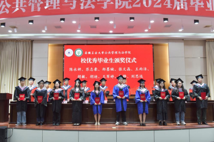院党委书记胡正友宣读了学院2024届安徽省品学兼优毕业生、校优秀毕业生名单,并宣读表彰决定,学院领导和导师代表为安徽省品学兼优毕业生、校优秀毕业生颁发了荣誉证书。