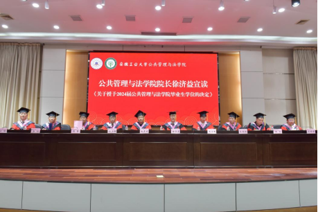 2024届毕业生学位授予仪式在佳山校区学术会议中心四楼报告厅隆重举行。学院党委书记胡正友,院长徐济益、教授委员会主任张洪根,院党委副书记、副院长周浩然,科研院长杨哲、教学院长王务均出席,各系室主任、党支部书记、班主任代表、全体辅导员、2024届本科生、研究生参加。学位授予仪式由院党委副书记周浩然主持。