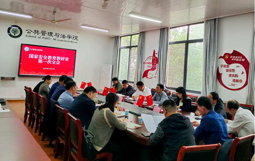 为深入贯彻党中央关于全面加强国家安全教育的决策部署,进一步将国家安全教育纳入国民教育体系,严格落实教育部和省教育厅关于《国家安全教育》公共基础课的有关文件要求,10月14日下午,公法学院在公法楼402会议召开国家安全教育教研室第一次会议暨集体备课会。学校教务处、保密办公室、学生工作部、安全保卫部、马克思主义学院分管领导及有关专家莅临指导,公法学院班子成员和国家安全教育教研室全体教师参加会议。教研室全会由副院长王务均主持,集体备课会由教研室主任龙长安主持。