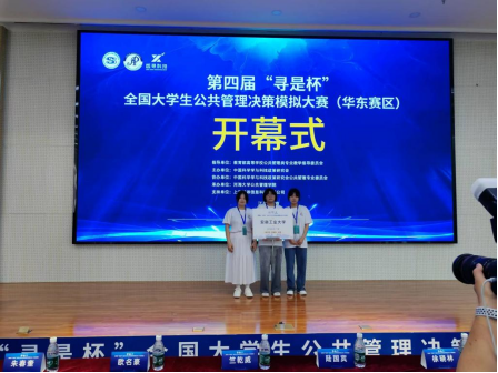 6月7日至8日,在吴鹏和问延安两位老师的指导下,由行政管理专业2023级贾静雯、杨可雯、张茜三位同学组成的代表队参加了在河海大学举办的第四届“寻是杯”全国大学生公共管理决策模拟大赛(华东赛区)。在为期两天的比赛中,团队与来自南京大学等高校的47支队伍展开激烈角逐,经过公共管理方案设计、沙盘对抗等多个环节的比拼,最终荣获二等奖,两位指导老师获得“优秀指导教师”称号。