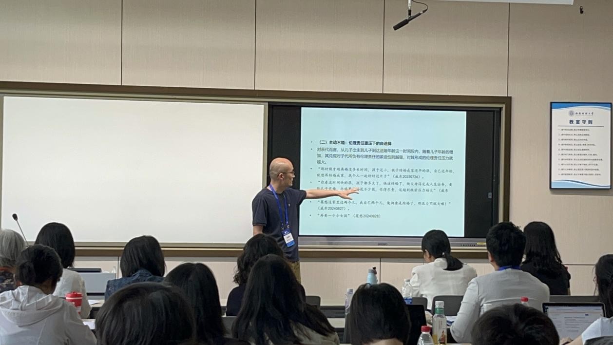 施磊磊老师、许建茹合作论文《伦理责任排斥:农村离异青年不婚的运作机制》在“中国式家庭现代化的理论探索与经验研究”分论坛做了报告,引发了与会学者的讨论与关注。