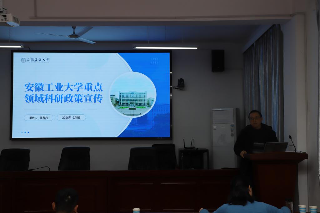 学院副院长王务均以“安徽工业大学重点领域科研政策宣传”为题,从科研职责划分、科研经费使用、科研项目管理、科研诚信遵守、职务成果赋权等五个方面开展了专题教育。科研院副院长吴金南就相关科研政策和学术诚信规范进行了详实的制度和案例宣讲,他希望全体师生进一步加强科研风险防范意识和科研诚信意识,严守学术道德底线。