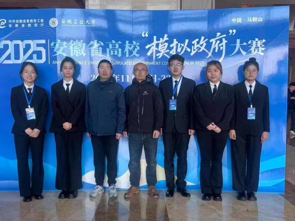 近日,由安徽省教育厅主办的2025年安徽省高校“模拟政府”大赛决赛圆满落幕。安徽工业大学派出的两支代表队凭借扎实的专业功底和出色的现场表现斩获佳绩。其中,由龙长安、施磊磊老师指导,胡祥宇、刘玉、张贝儿、李恬悦、刘文燕同学组成的“臻于至善”队,其参赛作品《智能技术赋能政务服务协同治理:市域社会治理现代化的路径研究——以M市12345热线平台为例》荣获大赛一等奖。由吴丽丽、焦芳芳老师指导,杨可雯、刘甜甜、赵默然、张馨心、魏俊杰同学组成的“致知力行”队,以作品《从“群众跑腿”到“数据跑路”:M市无证明城市赋能市域社会治理现代化研究》荣获大赛二等奖。