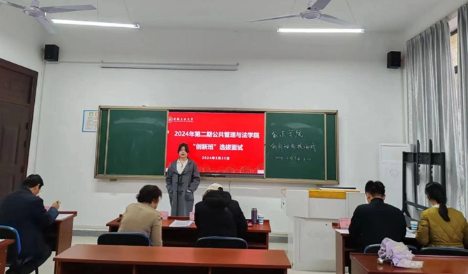 3月25日下午,公共管理与法院第二期新文科人才培养创新班面试工作在公法楼109室顺利举行,来自法学系、行政管理系、公共事业管理系和劳动与社会保障系的报名同学参加了此次面试。学院戚枝淬、韦子平、张增国、朱玲、钱前五位老师担任评委。