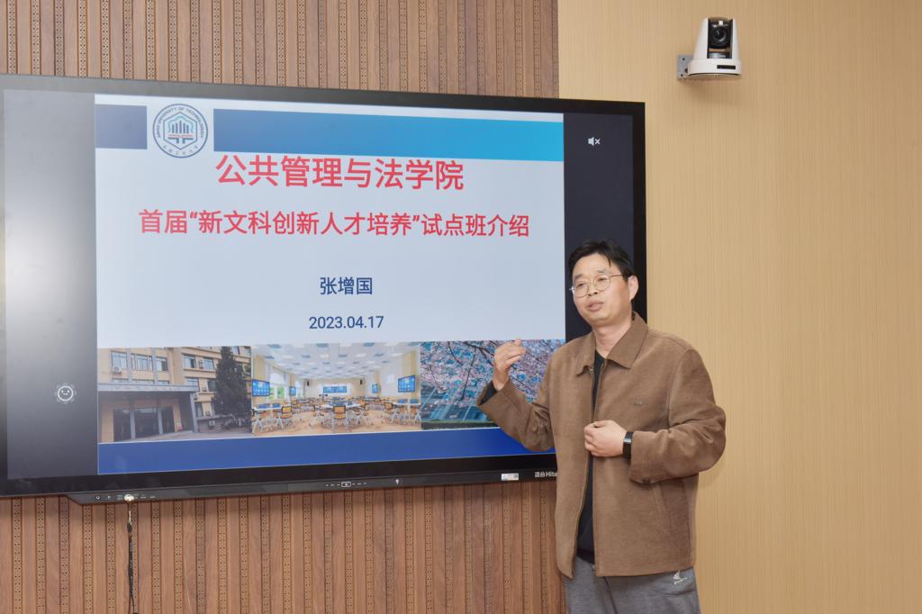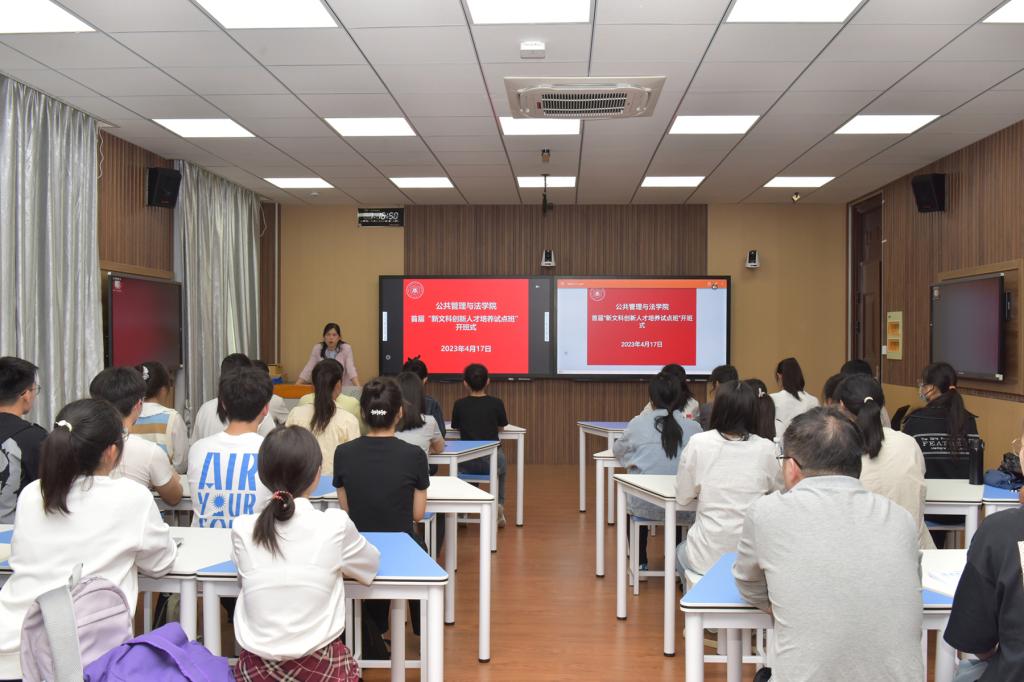 首期“新文科创新人才培养试点班”在公法楼智慧教室举行开班仪式,学院党政领导、各专业系主任、学院实验实训中心主任、学院团委书记、2022级辅导员、学院教学秘书、试点班全体学员和导师参加了开班仪式。开班式由教学副院长孔东菊主持。